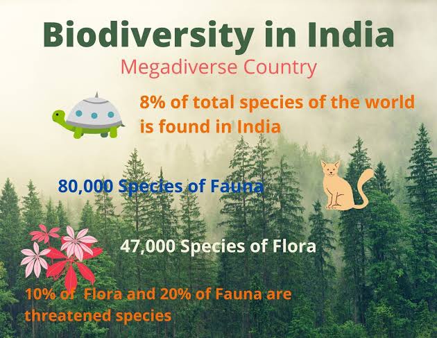 India is one of the world’s megadiverse countries, with 45,000 plant species and twice as many animal species. India has only 2.4 per cent of the world’s land area, but it has 8.1 per cent of the world’s species diversity, making it one of the world’s 12 mega diversity countries.India is the world’s 8th most biodiverse region with a 0.46 BioD score on diversity index, 102,718 species of fauna and 23.39% of the nation’s geographical area under forest and tree cover in 2020.